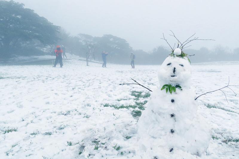 Snow started falling on the 3,416m Hehuanshan (合歡山) on the border of Nantou and Hualien counties at 4am to 5am, attracting crowds keen to enjoy the winter scenery, the bureau said.