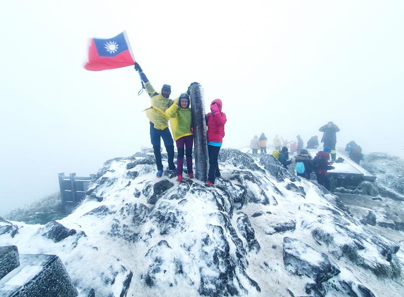 According to the weather observatory station on the mountain’s peak, temperatures in the Hehuanshan area were minus-0.1°C to minus-1.2°C for the rest of the day, with 2cm of snow having fallen.