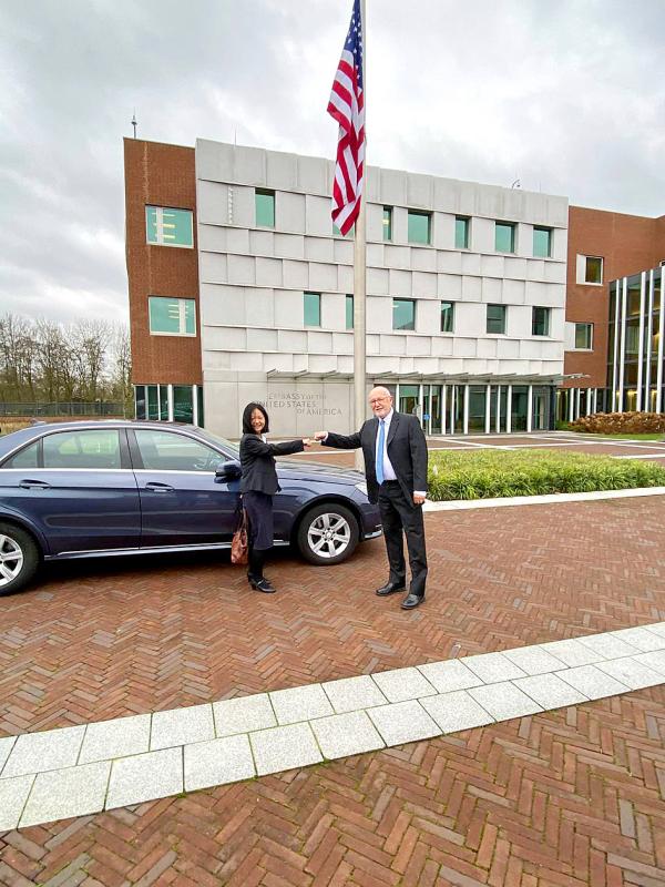 Chen replied on Twitter that she was pleased and honored to visit the US embassy in The Hague for “the very first time in my diplomatic career.”