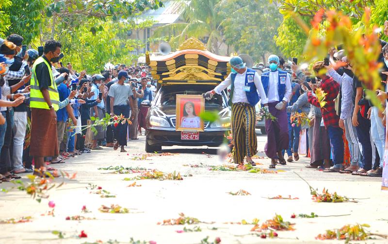 In the capital, Naypyidaw, a funeral service was held for a young protester who died on Friday after being shot in the head during a rally last week.
