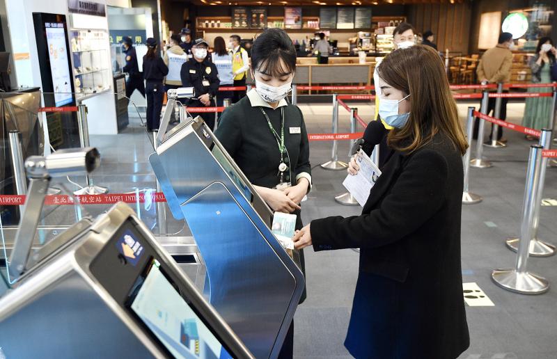 Songshan airport is the first in the nation to conduct a six-month trial of the “3e Smart Service” — e-Check (passport authentication), e-Gate (immigration) and e-Board (gate access) — as part of the government’s efforts to promote “touchless service.”