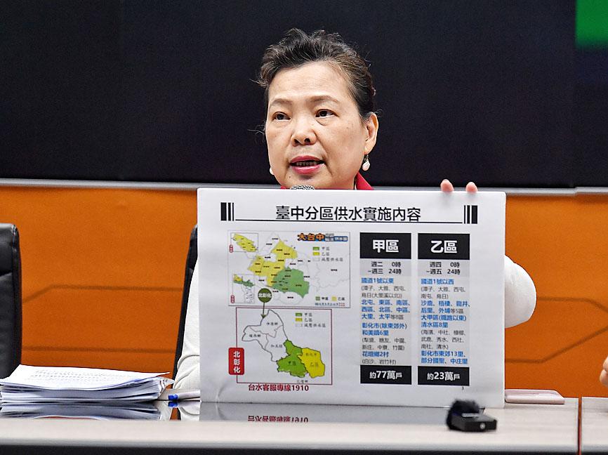 Some areas of Miaoli County and Taichung are to be placed on “red alert,” meaning that water supplies to households and businesses would be on for five days and off for two days, the ministry said yesterday.