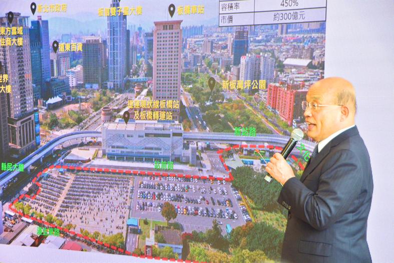 The National Children’s Future Plaza project is to be built on a 3.3-hectare plot of land worth NT$30 billion in Banciao District (板橋), Su said.