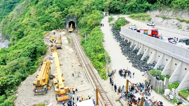 The accident occurred at 9:28am on Friday, when Taroko Express No. 408, traveling from New Taipei City to Taitung, hit a crane truck as it entered the Cingshuei Tunnel (清水隧道) in Hualien’s Sioulin Township (秀林).