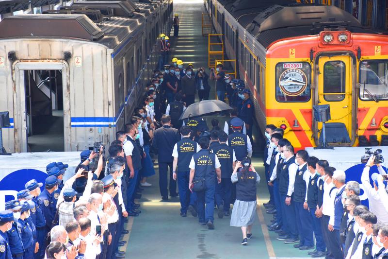 Board investigators tried to reconstruct the accident from data retrieved from the train’s dashcam, an onboard automatic train protection system, train control management system, a vehicle data recorder (VDR) on the crane truck, and footage from surveillance cameras along a nearby highway and other data, board chairman Young Hong-tsu (楊宏智) said.