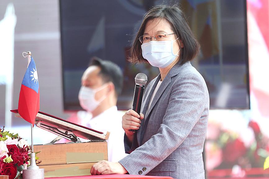 With its imminent deployment, the nation’s defense capabilities would be boosted, as the navy’s operations would be enhanced, she said at the ceremony at the Kaohsiung shipyard of shipbuilder CSBC Corp, Taiwan (台灣國際造船).