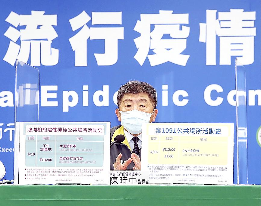 The local case is a family member of an Indonesian pilot who works for China Airlines (華航) and tested positive for COVID-19 in Australia, Minister of Health and Welfare Chen Shih-chung (陳時中), who heads the center, told a news briefing in Taipei yesterday.
