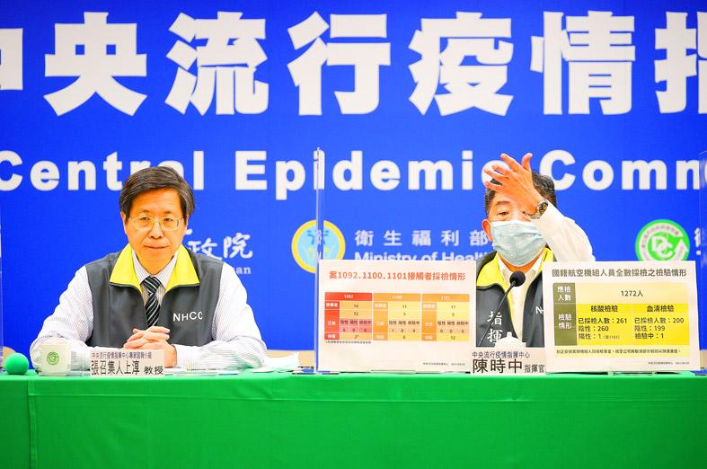 Minister of Health and Welfare Chen Shih-chung (陳時中), who heads the center, said that one of the new cases — No. 1,100 — is a Taiwanese man in his 50s.