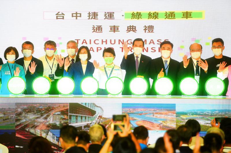 Taichung has officially entered the Mass Rapid Transit (MRT) age with the city’s Green Line beginning full service at noon yesterday, President Tsai Ing-wen (蔡英文) said.