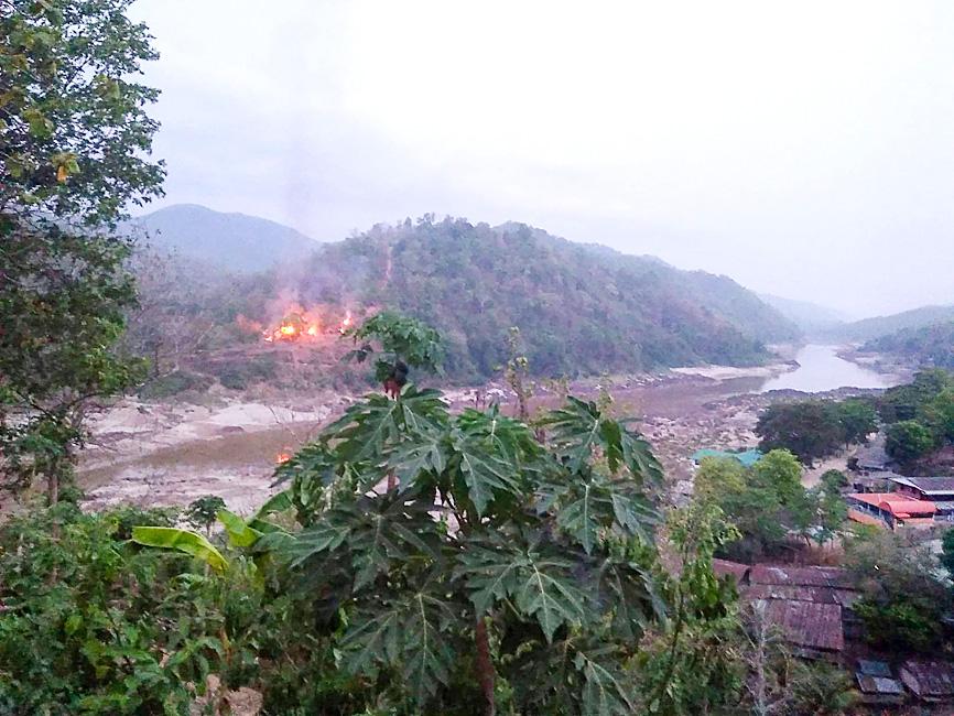 Video shot from the Thai side of the border showed flames rising from the government position on the banks of the Salween River, amid the sound of heavy gunfire. The river marks the border with Thailand.