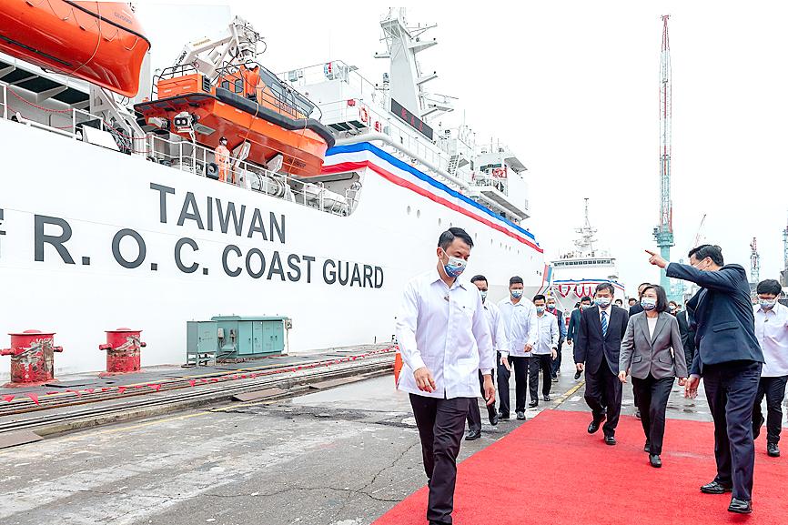 President Tsai Ing-wen (蔡英文) yesterday presided over a ceremony in Keelung to inaugurate a 4,000-tonne-class coast guard ship, named the Chiayi (嘉義), while highlighting the coast guard’s cooperation with the US.