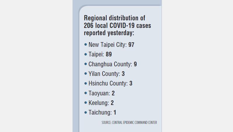 Minister of Health and Welfare Chen Shih-chung (陳時中) strongly urged everyone to thoroughly practice the “new disease prevention lifestyle” and avoid unnecessary outings and gatherings, as the Central Epidemic Command Center (CECC) confirmed 206 new local COVID-19 cases yesterday.