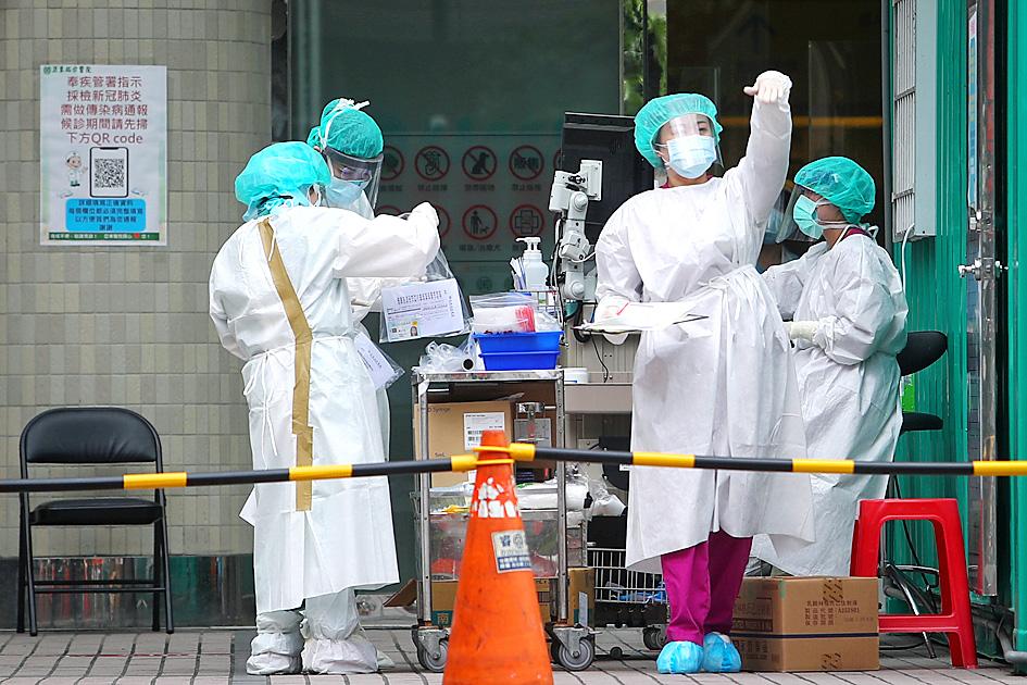 Asked about reports that some healthcare professionals had tested positive for COVID-19, Centers for Disease Control (CDC) Deputy Director-General Philip Lo (羅一鈞), who is the deputy chief of the CECC’s medical response division, said that patients in six hospitals in Taipei and New Taipei City had tested positive for the virus.
