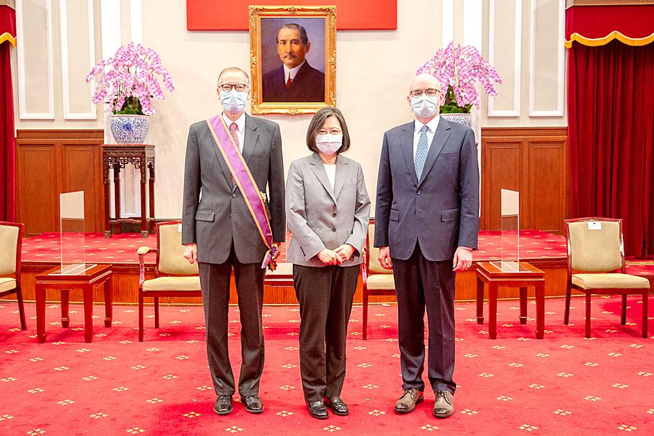 American Institute in Taiwan (AIT) Director Brent Christensen, whose three-year term ends this summer, was yesterday recognized by President Tsai Ing-wen (蔡英文) for his contributions to Taiwan-US relations.