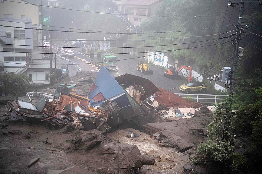 Television footage showed a torrent of mud obliterating buildings as it crashed down a hillside in Atami, southwest of Tokyo, sending people fleeing as it buried part of a road.
