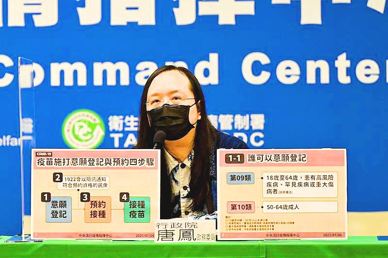 Minister Without Portfolio Audrey Tang (唐鳳), who designed the system, said that after discussions with local governments, they mostly agreed that the system should be used for scheduling vaccinations for those aged under 65, so it would be launched when the ninth and 10th priority groups are eligible for vaccination.