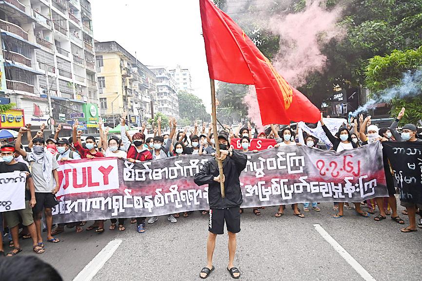 Protesters yesterday took to the streets across Myanmar to mark the anniversary of 1962 student protests against the country’s first junta, vowing defiance against its latest incarnation more than five months after it seized power.