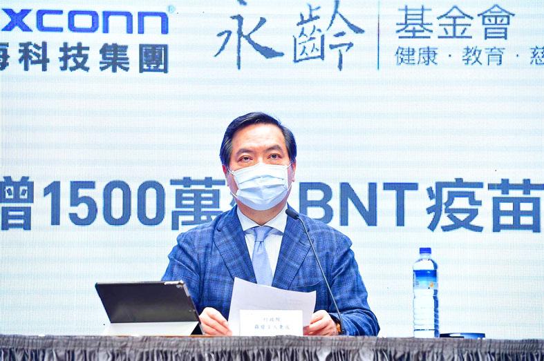 At about 10am, CDC Director-General Chou Jih-haw (周志浩) signed a contract with the foundation regarding its plan to donate the BioNTech vaccines to the government, Lo said.