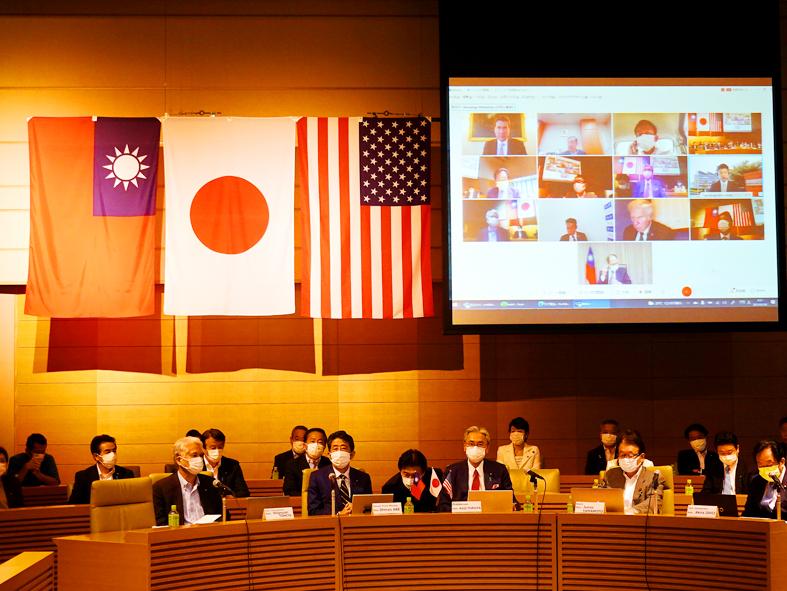 The first strategic forum for Taiwanese, US and Japanese lawmakers took place virtually yesterday, with former Japanese prime minister Shinzo Abe appearing as a special guest.