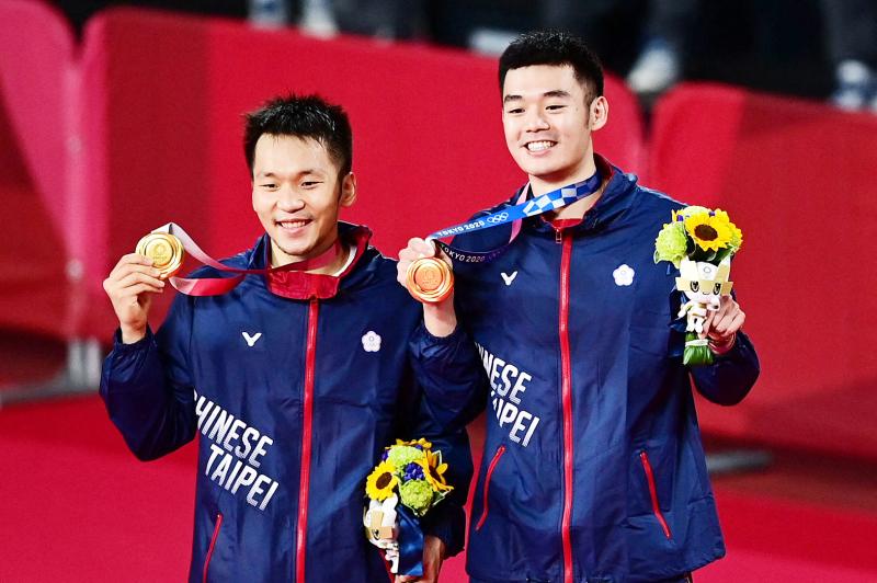 Taiwanese badminton duo Lee Yang (李洋) and Wang Chi-lin (王齊麟) yesterday won the nation’s first Olympic gold medal in the sport when they prevailed over a third-seeded Chinese pair in the final of the men’s doubles at the Tokyo Olympics.