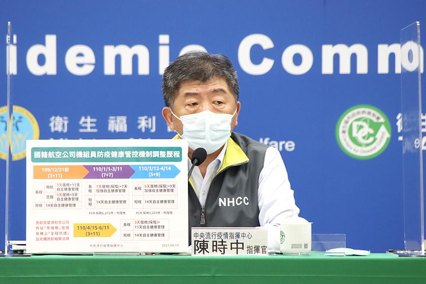 The Central Epidemic Command Center (CECC), which is headed by Chen, on April 15 allowed crew members on long-haul flights to isolate for just three days after their return. After testing negative for COVID-19, they were required to monitor their health for 11 days.