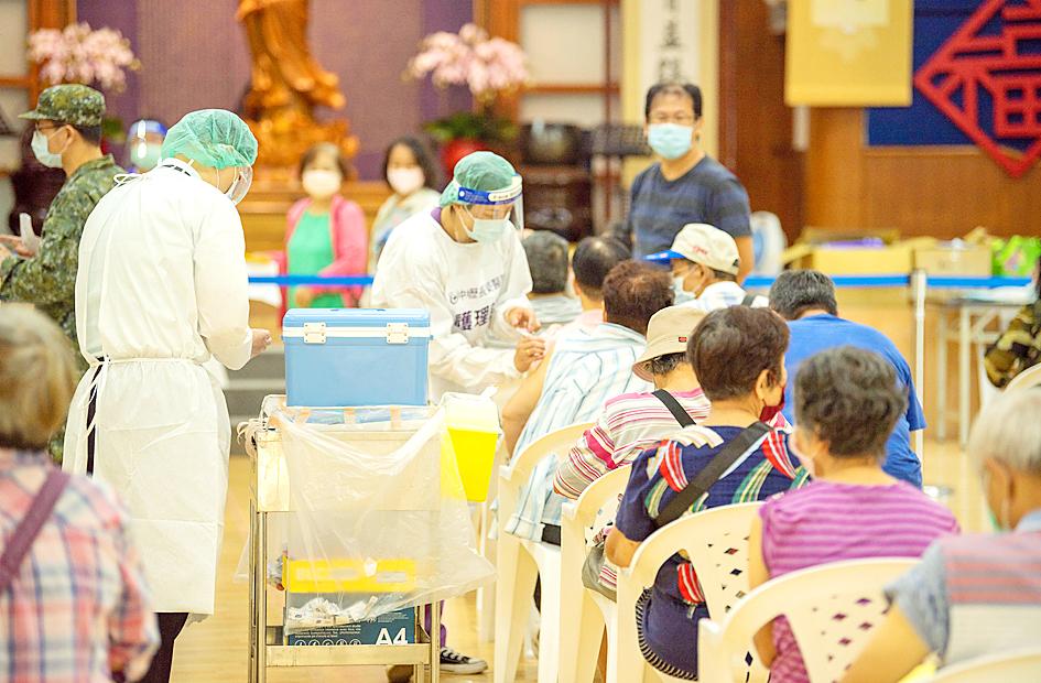 Regarding Medigen Vaccine Biologics Corp’s (高端疫苗) vaccine, Chuang said that anyone aged 20 or older who has not yet received their first dose of a COVID-19 vaccine is eligible to book a vaccination appointment directly with a contracted healthcare facility or a hospital affiliated with the Ministry of Health and Welfare.