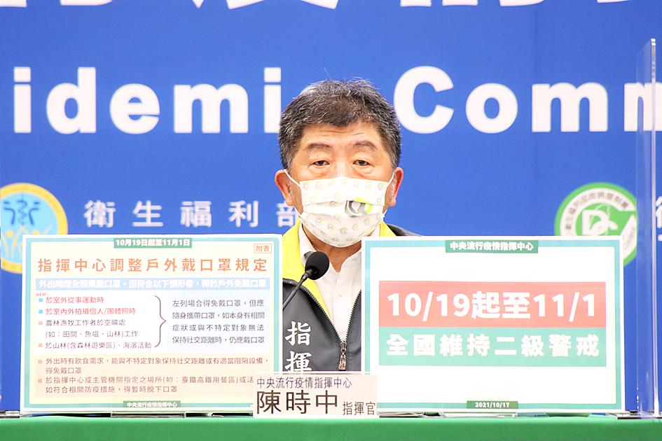 “The local COVID-19 situation is increasingly under control, with only three locally transmitted infections reported this month, all of which are considered earlier infections,” Chen said. “However, as we are still working hard to administer more COVID-19 vaccines, we have decided to keep the level 2 alert in place from tomorrow to Nov. 1.”