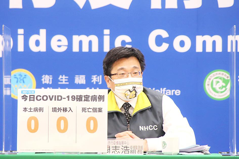 “This is the first time since April 8, which was 193 days ago, that we reported zero ... locally transmitted cases, imported cases and deaths,” said Centers for Disease Control (CDC) Director-General Chou Jih-haw (周志浩), who also heads the CECC’s disease surveillance division. “Of course, we are glad to see the numbers return to zero, but we need to work hard to keep up the good work.”