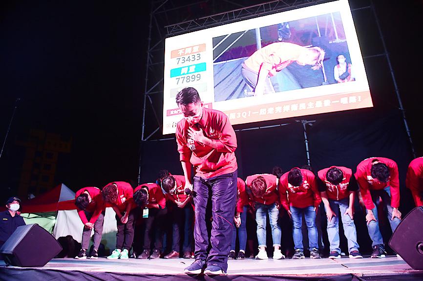 After the outcome was announced, Chen thanked supporters gathered at his Taichung campaign headquarters, where he led other Taiwan Statebuilding Party officials and staff in a bow.