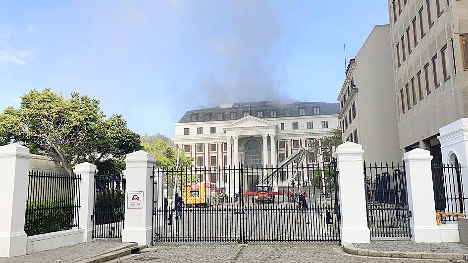 A massive fire in South Africa’s Houses of Parliament in Cape Town caused the roof of the old National Assembly building to collapse yesterday as the blaze continued to rage after eight hours.