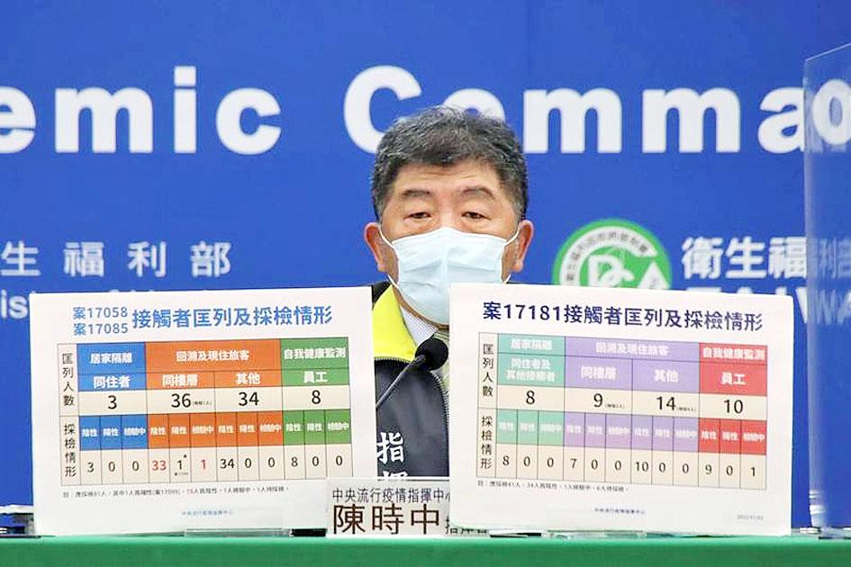 Minister of Health and Welfare Chen Shih-chung (陳時中), who heads the center, said that according to genome sequencing results, changes in the cycle threshold (Ct) values from polymerase chain reaction tests and other data, it is likely that one of the cases transmitted COVID-19 to the other cases at the hotel.