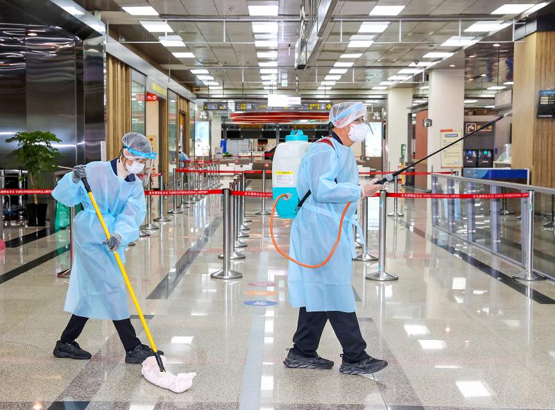 Victor Wang (王必勝), the center’s on-site commander at the airport, said priority was being given to identifying all possible contacts of the cluster to curb the spread of the disease.