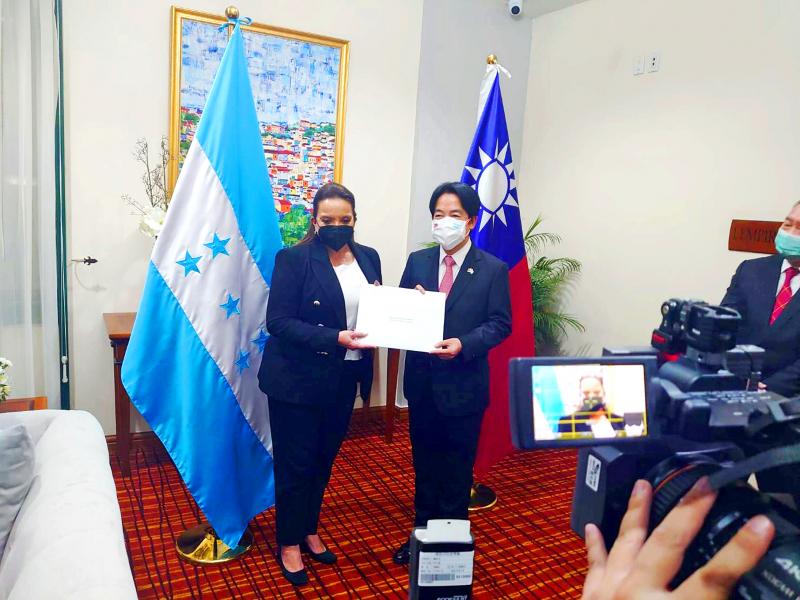 Honduras is grateful for the support Taiwan has provided and hopes to maintain their relationship, Honduran president-elect Xiomara Castro said on Wednesday after meeting Vice President William Lai (賴清德), who is in the country to shore up shaky ties.