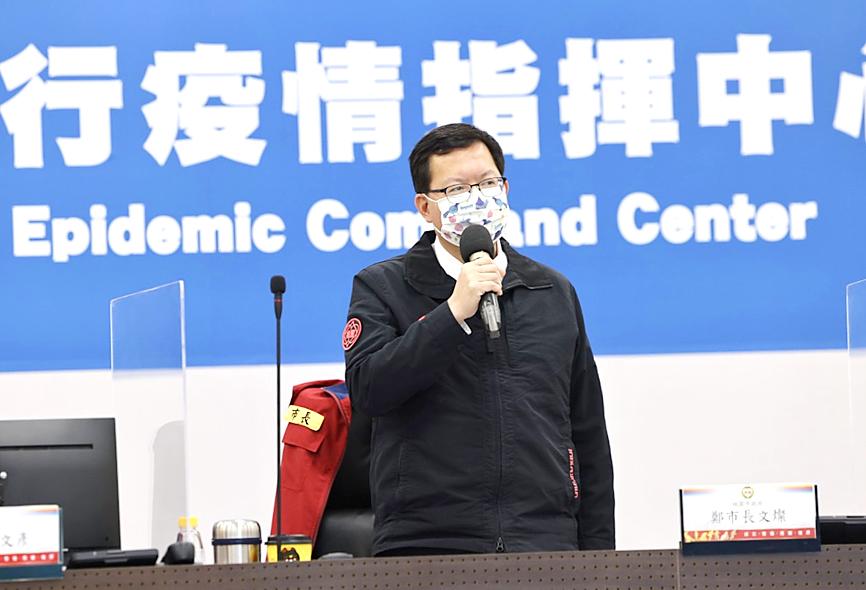 Taoyuan Mayor Cheng Wen-tsan (鄭文燦) made the announcement at a morning news conference, in which the city reported seven new COVID-19 cases, including two associated with Re-Yi Distribution Service Co (日翊物流) and five from a family cluster infection.