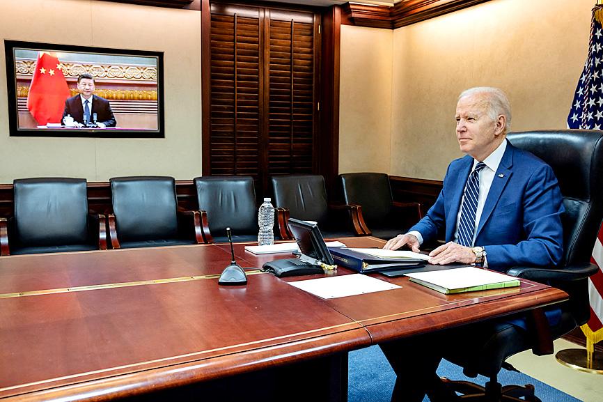 US President Joe Biden expressed concern about China’s “provocative actions” during a video call with Chinese President Xi Jinping (習近平) on Friday, the White House said.