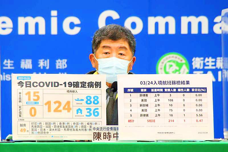 Taiwan yesterday also reported 124 imported cases of COVID-19, the highest daily total recorded since the pandemic began, Chen said.