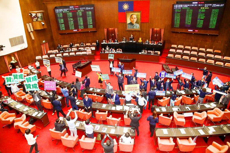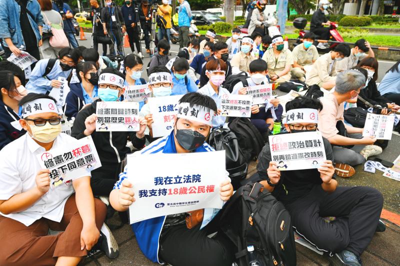 The proposed bill was put to a vote on the legislative floor yesterday afternoon as dozens of high-school students and representatives of non-governmental organizations mobilized outside the Legislative Yuan building in Taipei to express their support for the amendment.