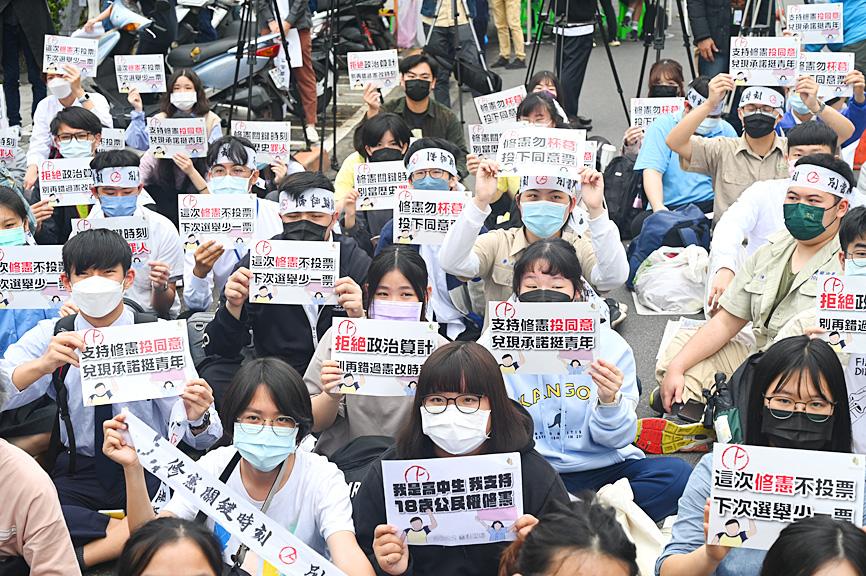 The Legislative Yuan on Friday voted 109-0 to lower the voting age to 18 from 20, setting the stage for a referendum to put the constitutional amendment to a public vote. The referendum must be held within three months following a six-month buffer period, meaning that it must be held between October and the end of this year. At least half of all eligible voters must vote in its favor for the amendment to pass.