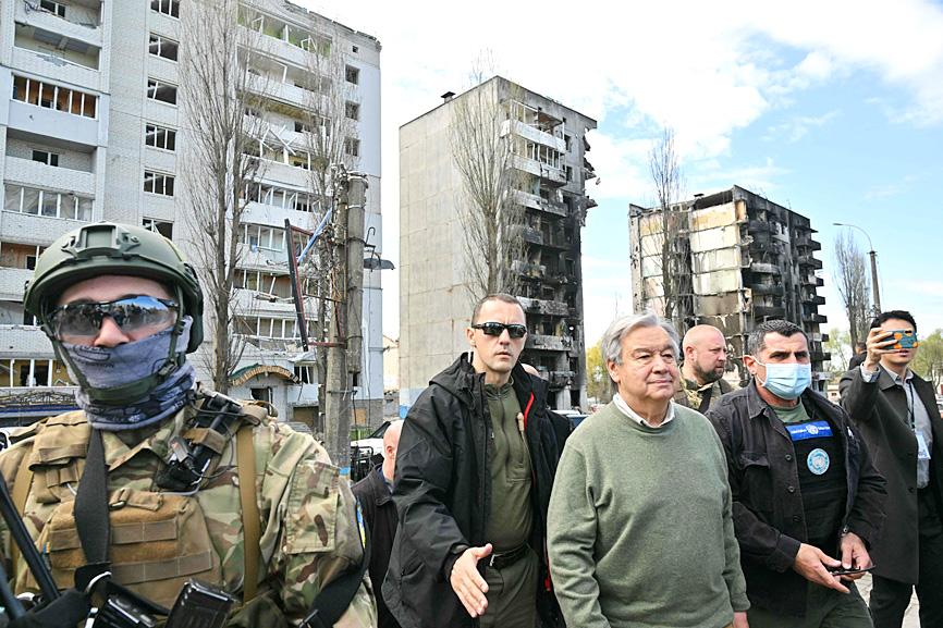 UN Secretary-General Antonio Guterres yesterday visited sites of alleged Russian war crimes in Ukraine, decrying war as “an absurdity in the 21st century” and urging Russia to cooperate with an international investigation into atrocities.