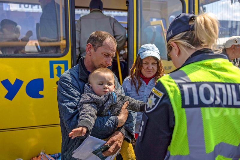 Video posted online on Sunday by Ukrainian forces showed elderly women and mothers with small children climbing over a steep pile of rubble from the sprawling Azovstal steel plant and eventually boarding a bus.