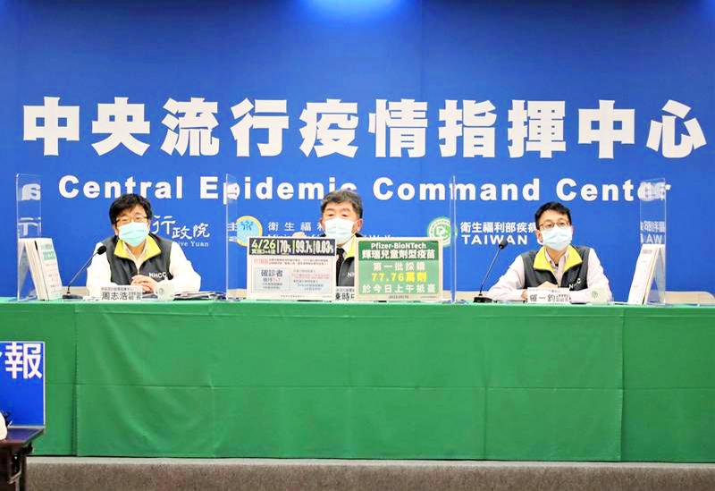 CDC Deputy Director-General Philip Lo (羅一鈞), deputy head of the CECC’s medical response division, said that of 126 new cases with moderate symptoms, 57 (45 percent) were unvaccinated and of 22 new cases with severe symptoms, 11 (50 percent) were unvaccinated.