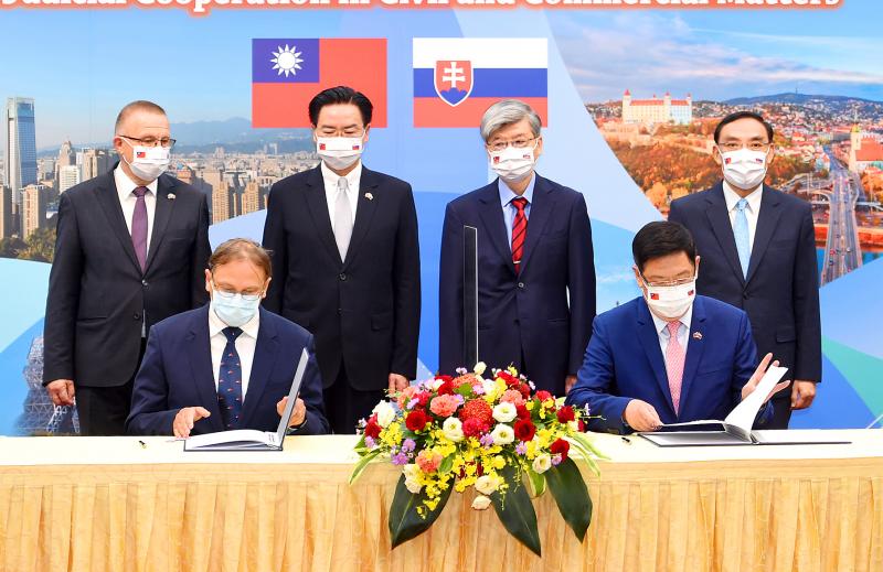 Taiwan and Slovakia yesterday signed an agreement on judicial cooperation in civil and commercial matters, the first of its kind signed by Taiwan with an EU country.