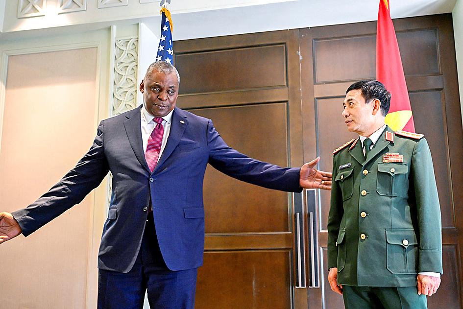 Austin and Singaporean Minister for Defence Ng Eng Hen (黃永宏) had one of the first bilateral discussions.