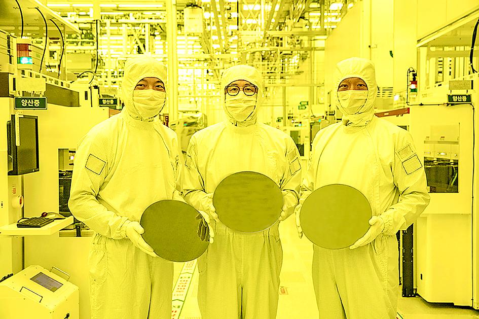 Samsung Electronics Co yesterday commenced mass production of 3-nanometer chips that are more powerful and efficient than predecessors, beating rival Taiwan Semiconductor Manufacturing Co (TSMC, 台積電) to a key milestone in the race to build the most advanced chips in the world.
