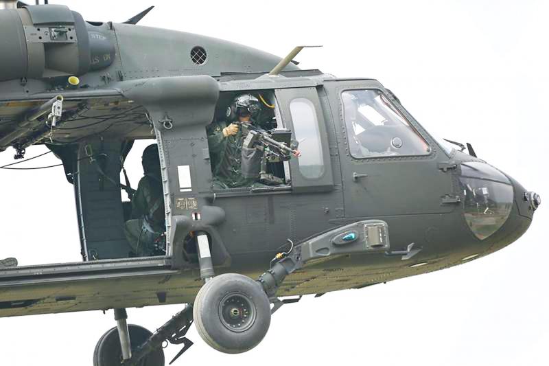 The exercises involving the Black Hawks, which were armed with M240 machine guns, were the first such drills since the Air Rescue Group was formed in 1950, the military official said.