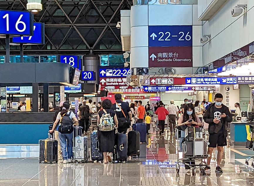 HOLIDAY RUSH: Airport passenger volume is expected to reach a new high, while southbound road traffic would likely peak from Tuesday As Lunar New Year travelers flock overseas, passenger traffic at Taiwan Taoyuan International Airport is expected to shatter records, as Taoyuan International Airport Corp (TIAC, 桃園國際機場), Taiwan’s largest aviation hub operator, projected yesterday’s passenger volume to climb to 167,000. The figure comes after a record single-day high of 161,000 passengers on Thursday, and would surpass the previous pre-COVID-19 pandemic Lunar New Year peak of 166,000 passengers in 2019, TIAC said. Long lines could be seen forming as early as 7am yesterday, filling Terminal 1 of the airport almost to capacity, yet security checks took only 10 to 15 minutes. TIAC urged