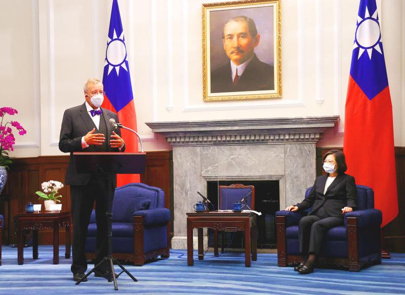 The meeting between Tsai and Ilves was also attended by Japanese lawmaker Keisuke Suzuki, former Australian ministers for defense Kevin Andrews and Christopher Pyne, and Lyon Institute of Political Studies associate professor Stephane Corcuff, as well as Ilves’ wife, Ieva Ilves.