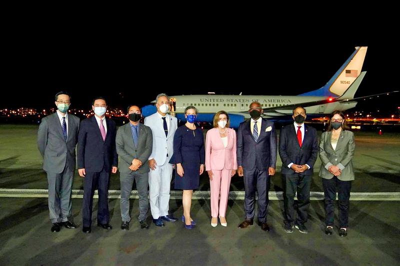 US House of Representatives Speaker Nancy Pelosi arrived in Taipei last night and was reportedly scheduled to meet with President Tsai Ing-wen (蔡英文), legislators and democracy advocates before departing later today.