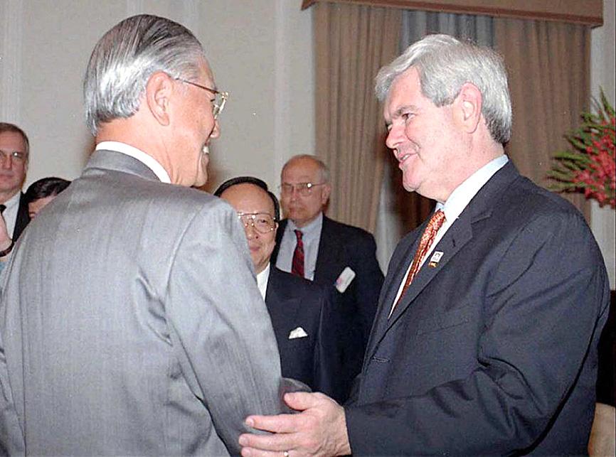Pelosi is the first sitting US House speaker to visit Taiwan since 1997, when Newt Gingrich traveled to Taipei and met with then-president Lee Teng-hui (李登輝).