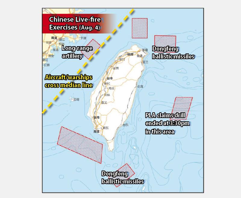 China yesterday fired several Dongfeng ballistic missiles as it began four days of unprecedented military drills off Taiwan proper following US House of Representatives Speaker Nancy Pelosi’s visit to Taipei the previous day.